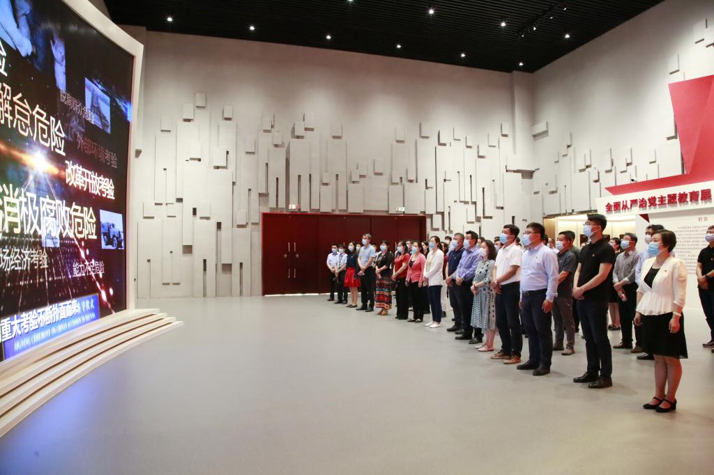 通过重温习近平总书记关于全面从严治党的系列重要论述,回顾党在各个历史时期狠抓党风廉政建设和反腐败斗争的伟大历程,党员干部们接受了一场系统深入的党史学习教育。一个个触目惊心的案例、一张张悔恨不已的脸庞、一封封引人深思的忏悔书,让在场的每位同志都经历了一场触及灵魂的警示教育。参观过程中,党员干部们认真听取精彩的讲解,仔细观看图文介绍、视频资料、忏悔书、陈列展品等展览内容,不断加深了对全面从严治党深刻内涵的认识和领悟。参观结束前,全体同志们面对党旗,重温入党誓词。学校纪委副书记、纪委办公室主任张蕾领誓并传达了学校党委关于坚决贯彻落实习近平总书记系列讲话精神和全面从严治党决策部署,严守党规党纪要求,持续强化自我约束的要求。