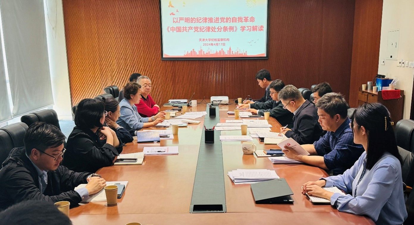 4月17日,天津大学纪委在北洋园校区1895行政楼A301召开全委会(扩大)会议,传达学习习近平总书记关于党纪学习教育的重要讲话和重要指示精神、党纪学习教育工作有关重要会议和文件精神、学习贯彻新修订的《中国共产党纪律处分条例》(以下简称《条例》)。学校纪委委员参加会议,学校纪检监察干部和巡视干部列席会议。会议由纪委副书记、学校纪检监察机构办公室主任张蕾主持。