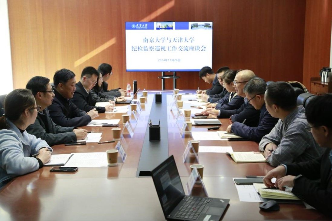 11月26日,南京大学党委副书记、纪委书记、监察专员刘淼一行来天津大学调研交流。校党委副书记、纪委书记、监察专员李炜陪同调研并主持座谈交流,学校纪检监察机构和党委巡视办干部参加了调研交流。