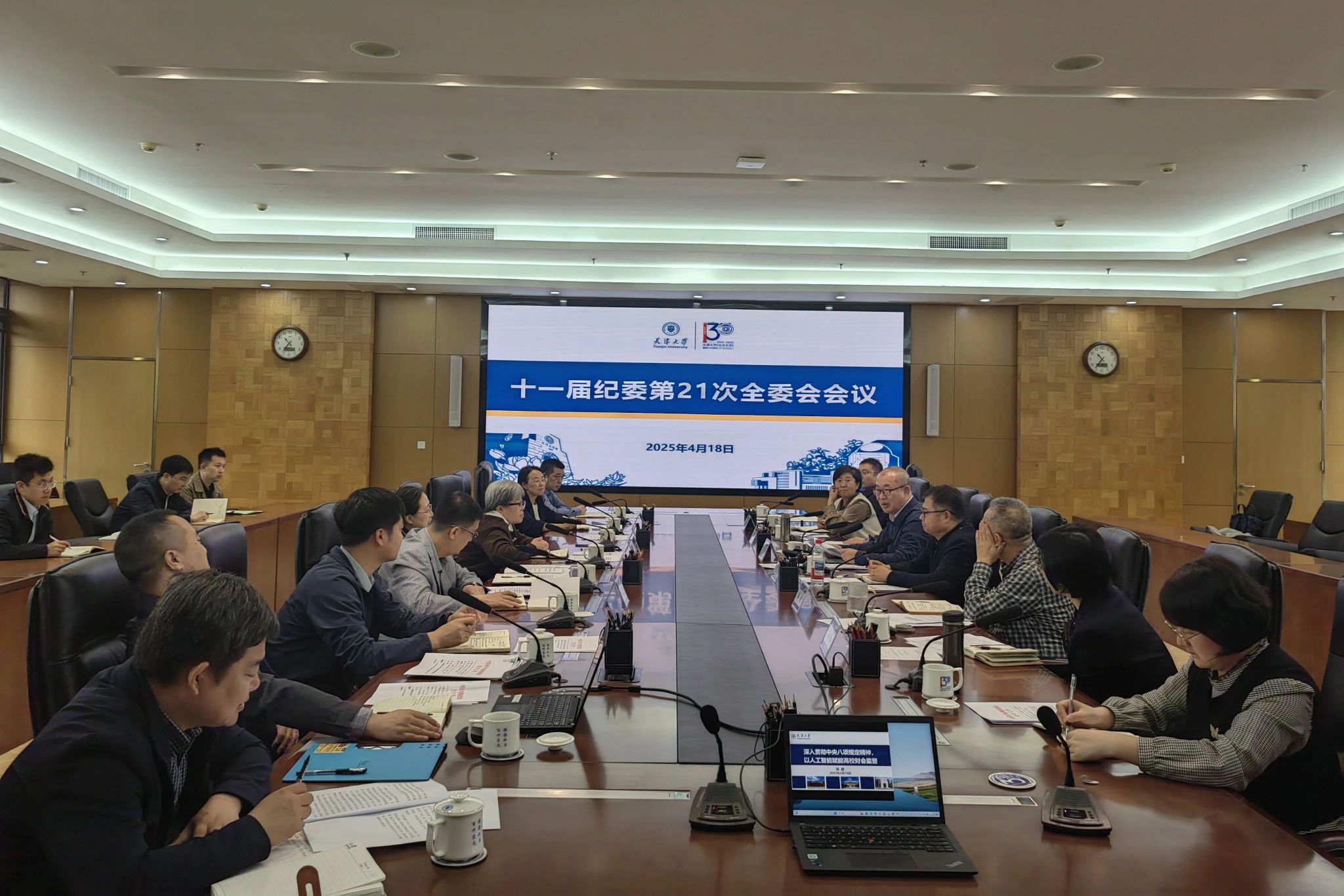4月18日,天津大学纪委召开十一届第21次全体(扩大)会议,传达学习习近平总书记重要讲话、指示批示精神和近期有关重要会议和文件精神,研究部署贯彻落实举措。校党委副书记、纪委书记、监察专员李炜主持会议,学校纪委委员参加会议,专职纪检监察干部、巡视干部列席会议。